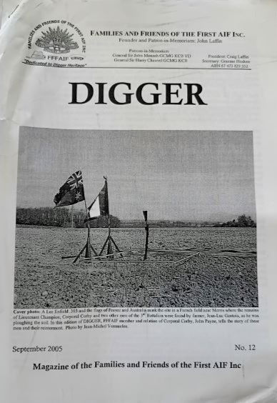 FFFAIF was established as an association in 2002. It was the idea of historian John Laffin, who put forward the proposal in 1998 to create an association that was “Dedicated to Digger Heritage”. At the time, he was attending the unveiling of the Australian memorial to commemorate the 4th July 1918 battle at Le Hamel on the Somme battlefield.