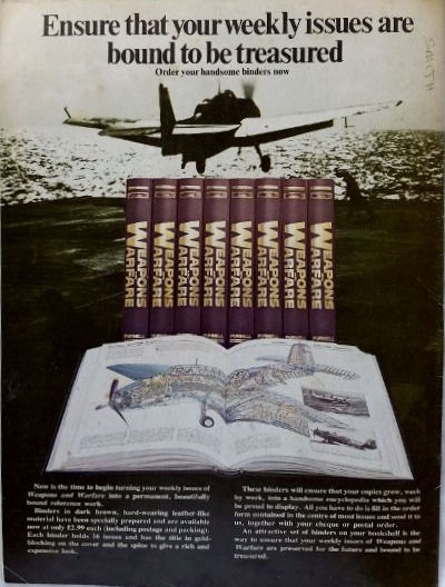 Covering the twentieth century up to its publication date, the encyclopedia spans 125 volumes organized alphabetically, with varying detail levels from brief paragraphs to extensive technical analyses. Additionally, it featured several posters by John Batchelor and other materials. In 1977, a 24-volume version titled The Illustrated Encyclopedia of 20th Century Weapons and Warfare was released, distributed by Columbia House.